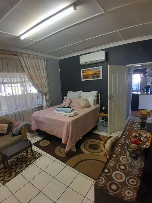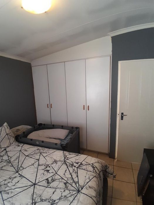 Relax in secure Summerfields Estate living — south-facing corner unit with open-plan flow, manicured garden and thatched lapa for entertaining; two ensuite bedrooms, garage and carport.