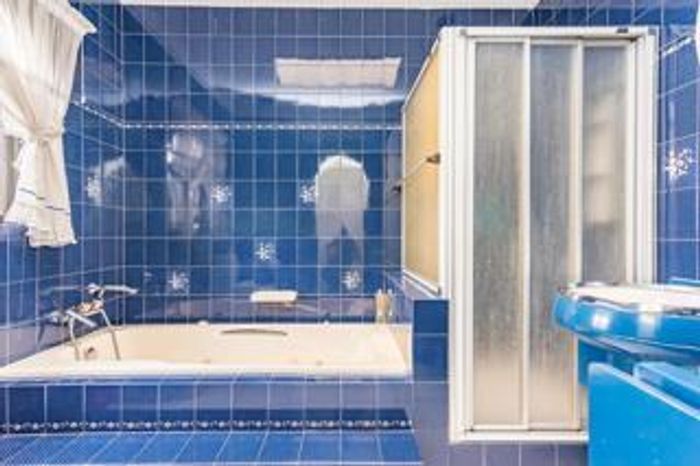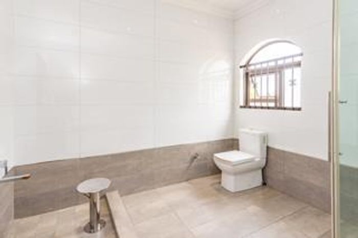 Entertainer's paradise in Linmeyer with sparkling pool, patio with built-in braai and cinema room, expansive garden, four en-suite bedrooms, four-and-a-half baths and three garages.