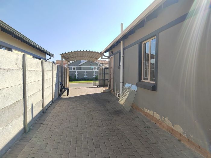 Family-focused Mayberry Park home near amenities, with private courtyard, covered patio and built-in braai, expansive yard for extensions, converted double garage and three bedrooms.