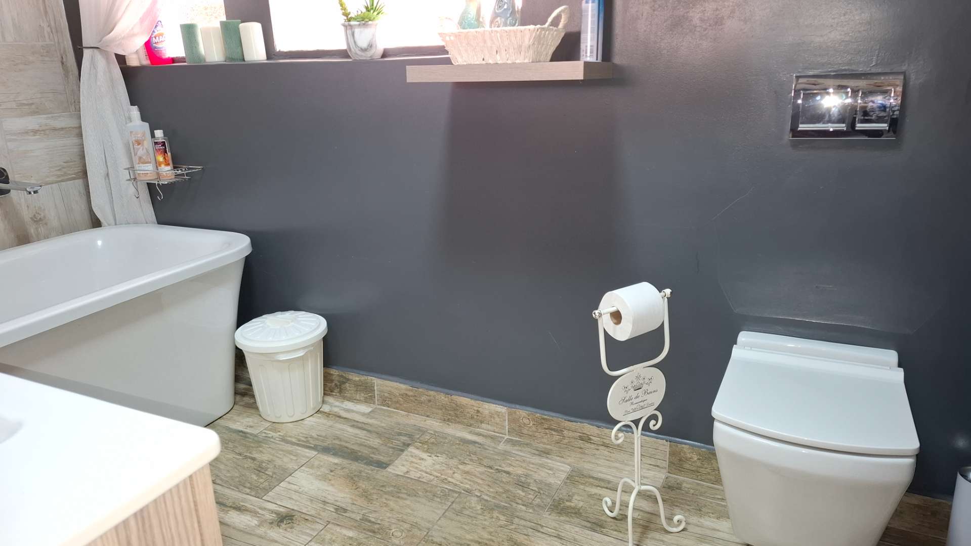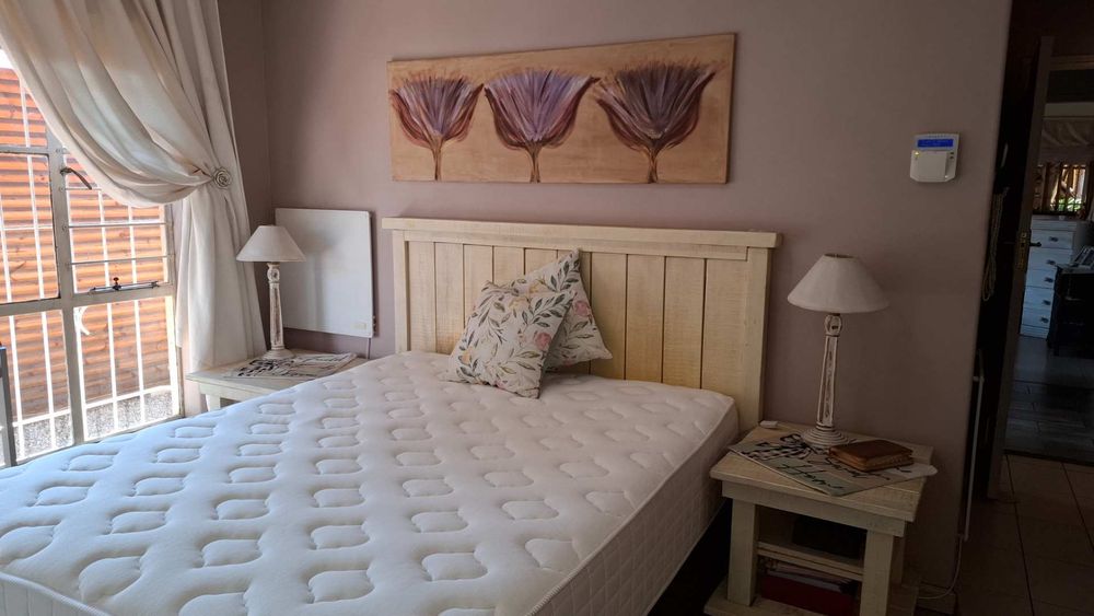 Flat: Tiled lounge/dining, full kitchen, 1 bedroom and bathroom. Own entrance and carport.