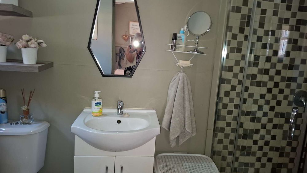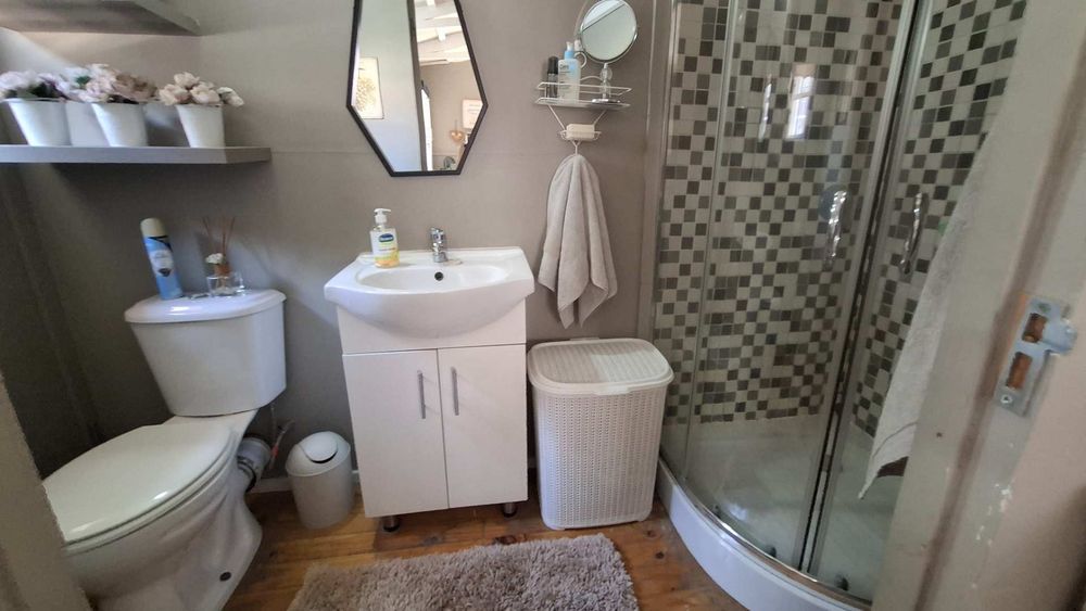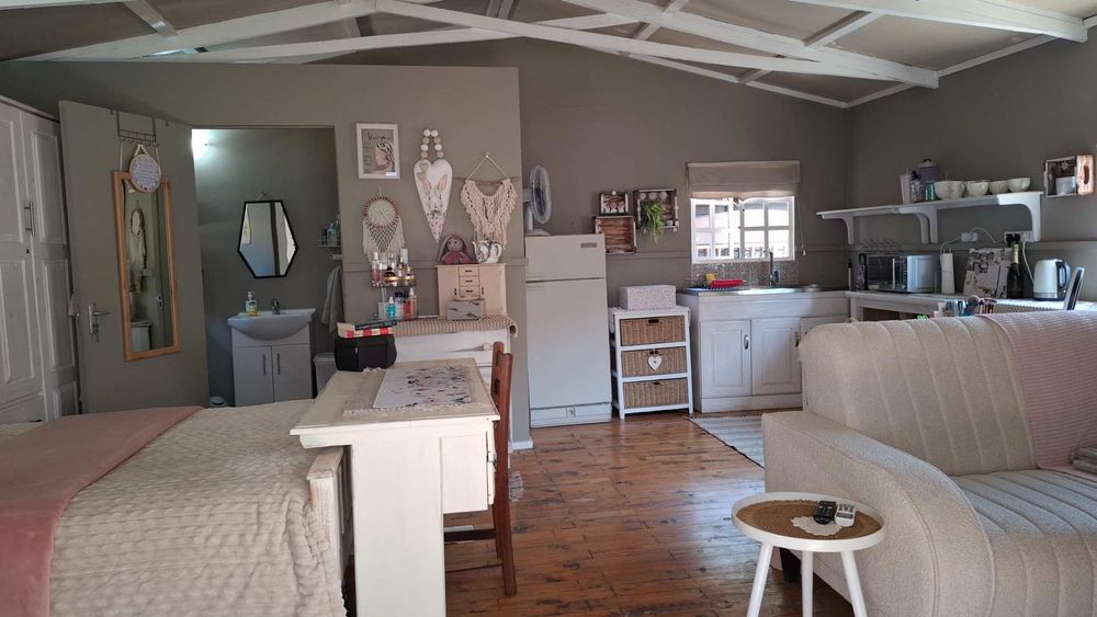 2nd flat: Wooden cottage with open plan lounge, bedroom area and bathroom. Own geyser