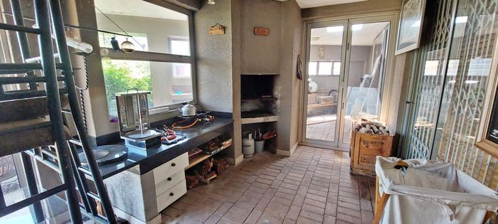 For your convenience, the property provides five covered carports and boasts a durable tiled roof. Safety is prioritized with an alarm system and beams linked to Fox Security. Enjoy outdoor living with an automatic gate, a built-in braai area, and a well-maintained garden supported by a borehole and irrigation sprinkler system.