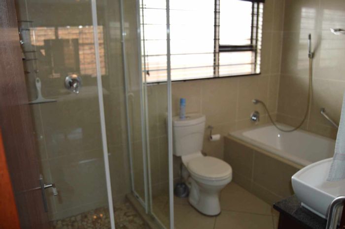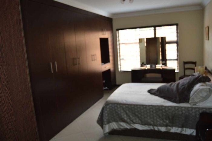 Relaxed family living in an established neighbourhood near amenities; open-plan layout with indoor entertainment area, built-in braai/bar, pool and garden. Four bedrooms, 2.5 baths, double garage.