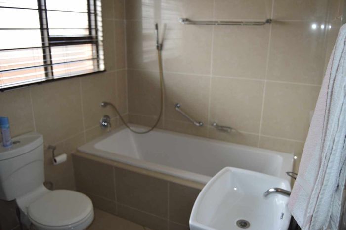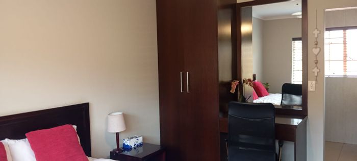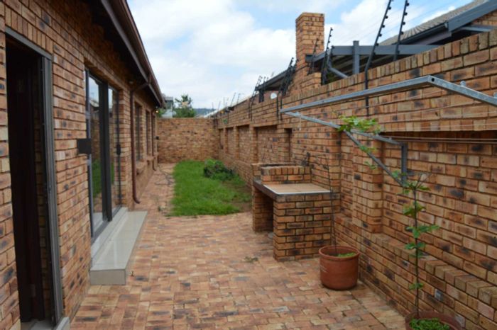 Relax in secure Summerfields Estate living — south-facing corner unit with open-plan flow, manicured garden and thatched lapa for entertaining; two ensuite bedrooms, garage and carport.