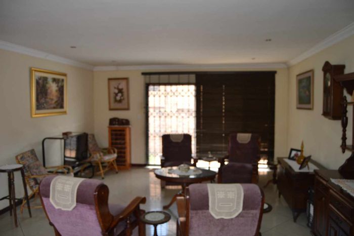 Effortless family living and entertaining in a peaceful suburban setting, with a thatched lapa and built-in braai overlooking a sunny pool; four bedrooms, three bathrooms and double carport.