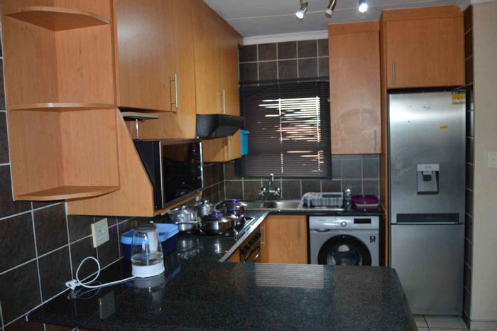 Ground-floor living in a secure New Redruth complex — open-plan kitchen, lounge and dining, built-in cupboards, single garage and easy access to shops, schools and parks.