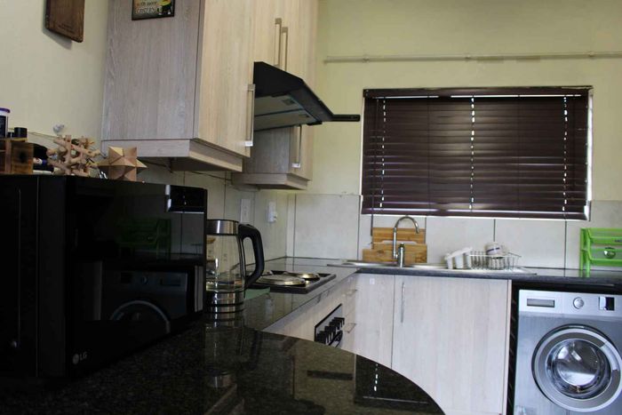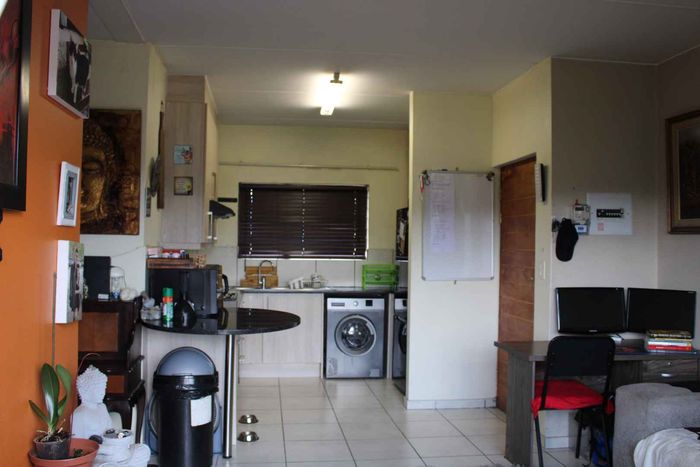 Entertain in this secure estate with modern kitchen flowing to covered patio and built-in braai overlooking enclosed garden. Close to schools, malls, transport. Three bedrooms, two bathrooms, double garage.