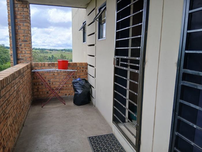 Effortless commuter lifestyle near the R59 in a well-developed area, with open-plan living flowing to a balcony with views, two bedrooms, bathroom and one covered, one open parking.