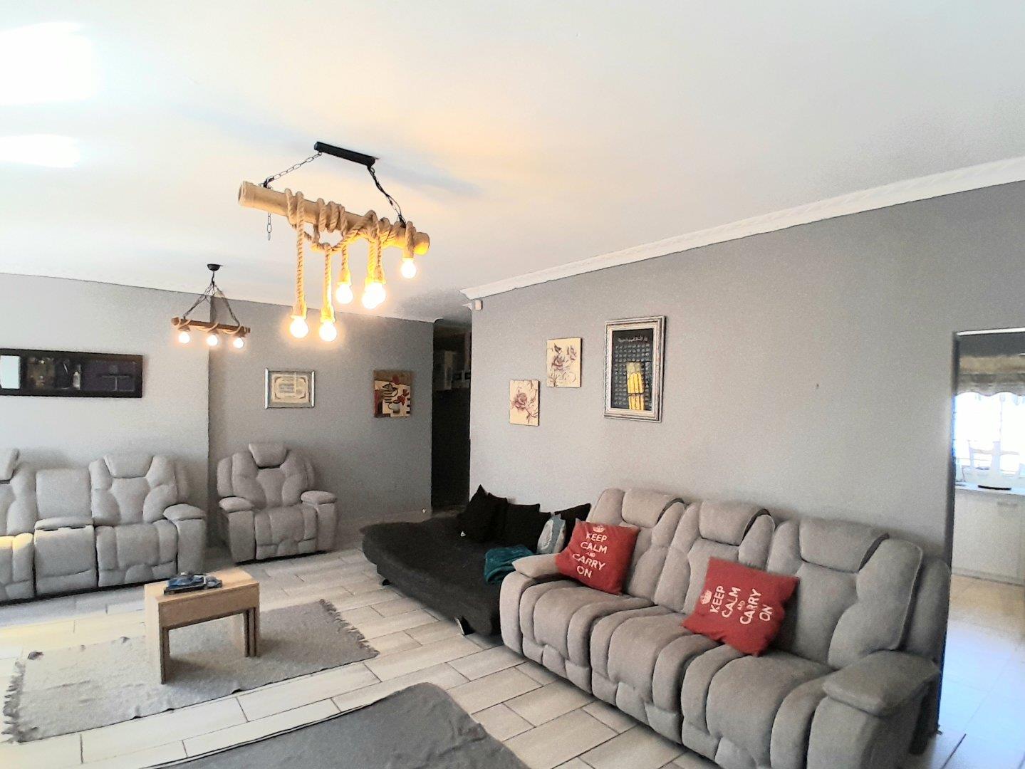 Tranquil koppies retreat with expansive gardens, modern kitchen with gas hob and under‑counter oven, plus a separate office/flat — family home with 4 bedrooms, 2 baths, double garage.