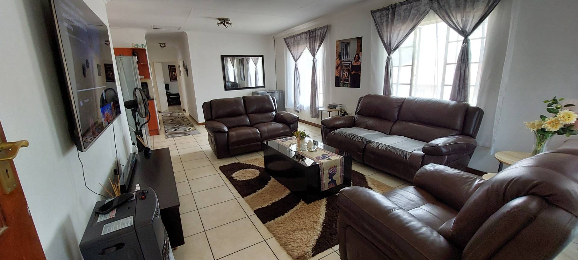 Outside, the private garden provides a tranquil oasis with a lush lawn and paved areas, ideal for relaxing or entertaining guests. Security is paramount, featuring burglar bars, security gates, and a guard house with an access-controlled gate for your peace of mind.