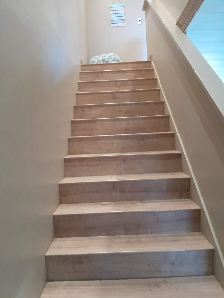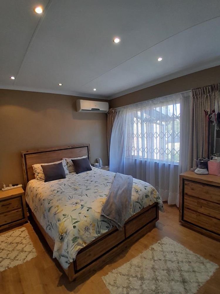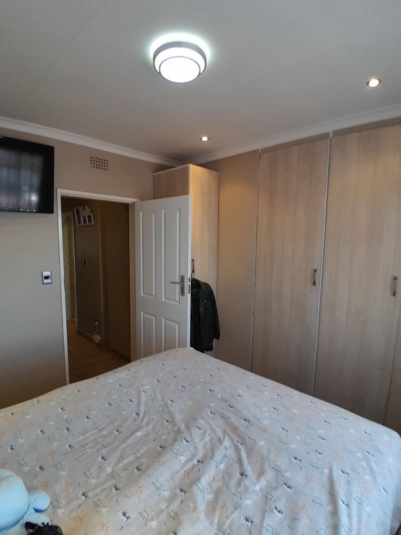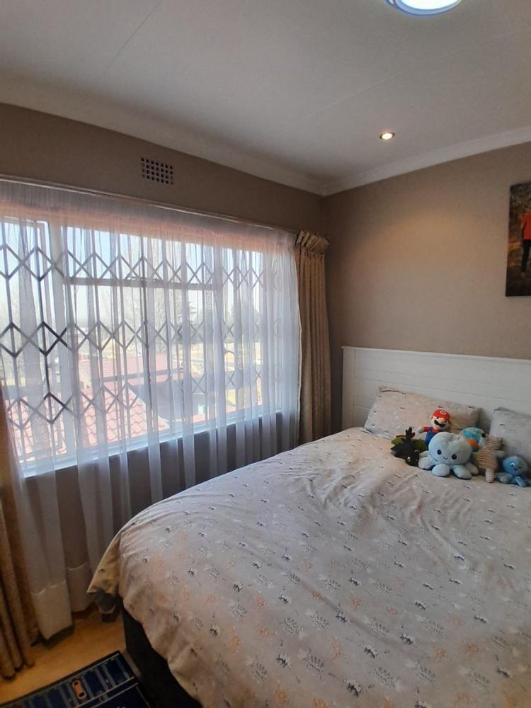 Ascend to the upper level, where you will find 2 generously sized bedrooms, each adorned with elegant laminated flooring and equipped with built-in cupboards. The master bedroom boasts an en-suite bathroom with a bath, toilet, and basin, all beautifully tiled. The 2nd bathroom is equally stylish, featuring a shower, toilet, and basin.