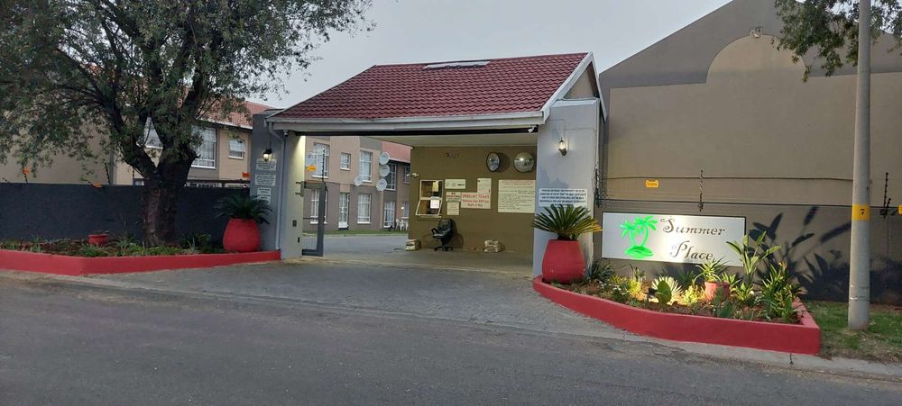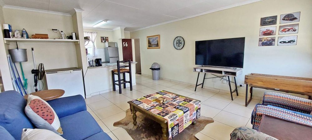 along with plenty of visitor parking. Enjoy the complex's impressive communal amenities, including a sparkling pool, a braai area with a lapa for social gatherings, and a children's play area complete with swings and a jungle gym set amidst expansive lawns.