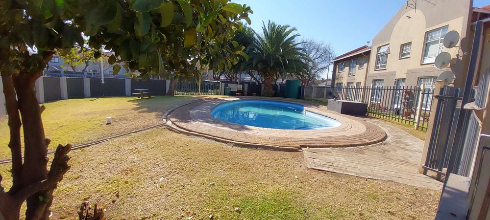 1st floor corner unit offering 2 bedrooms, bathroom and spacious open plan lounge and kitchen area with a breakfast nook. 1 covered parking with some visitors parking available. The complex offers a pool and lots of lawn around a kiddies play area. Braai vacilities and a lapa may be used for your bigger events.