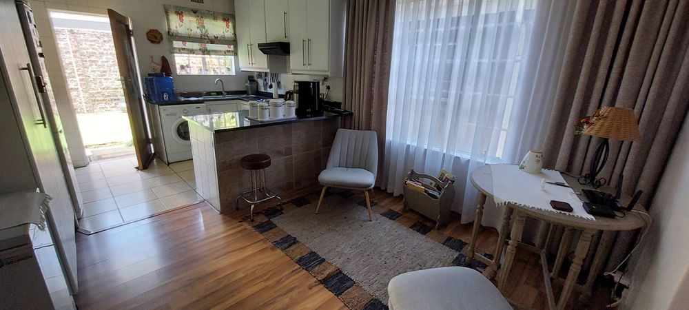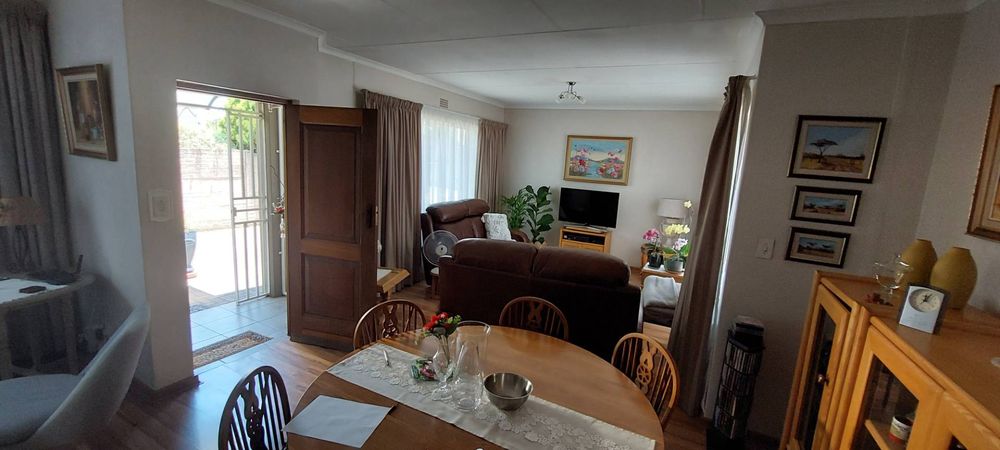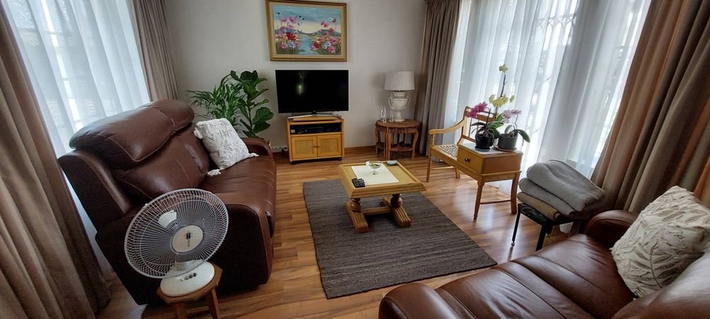 Outdoor living is equally impressive with a lovely manicured garden and thatched lapa, ideal for a quiet evening under the stars. Additional features include a single garage and a single carport, providing ample parking space. A garden shed offers extra storage, catering to all your organizational needs.