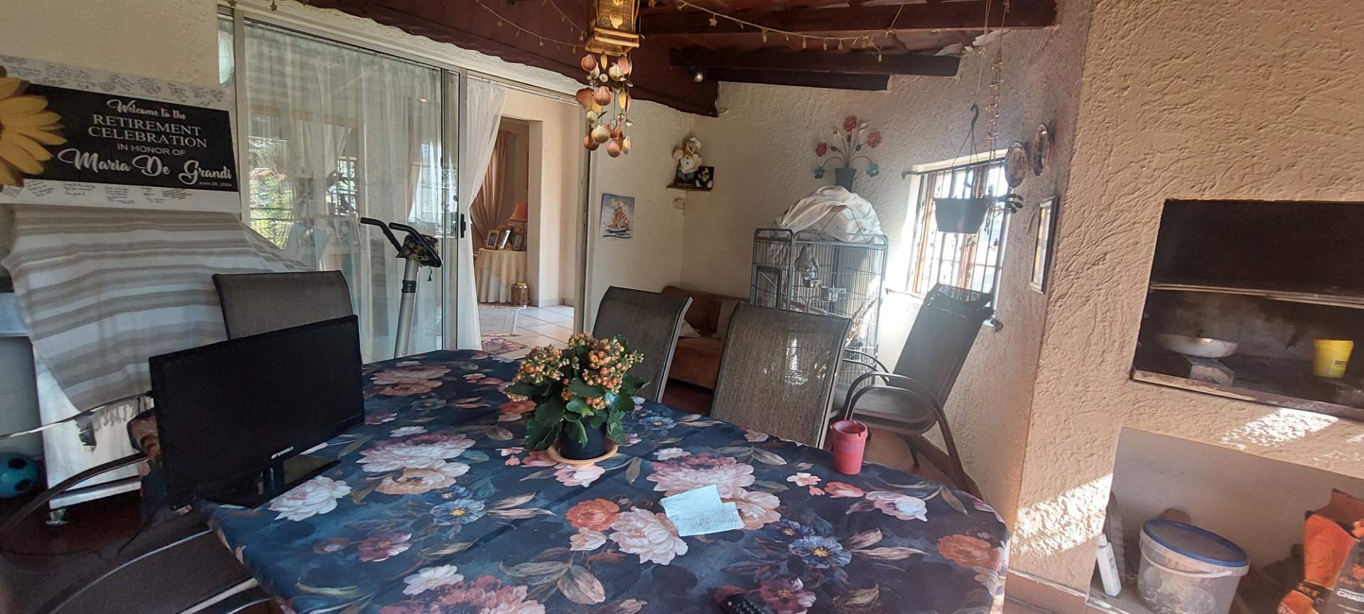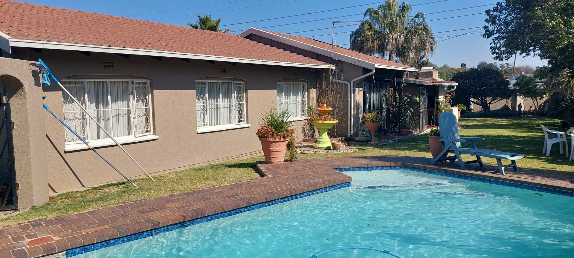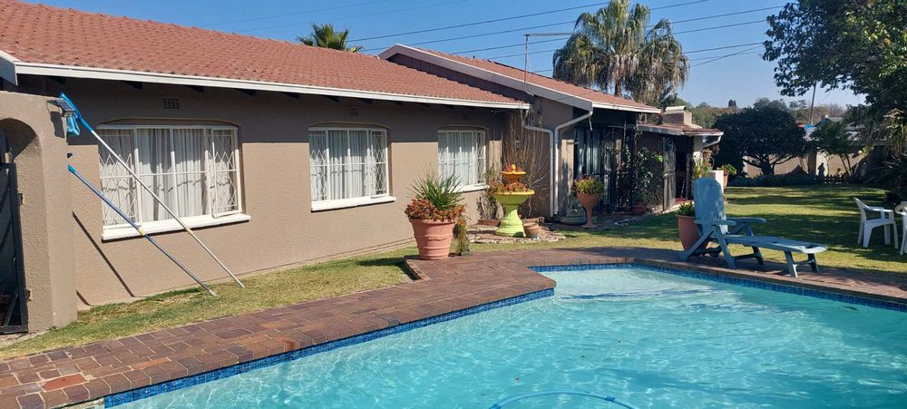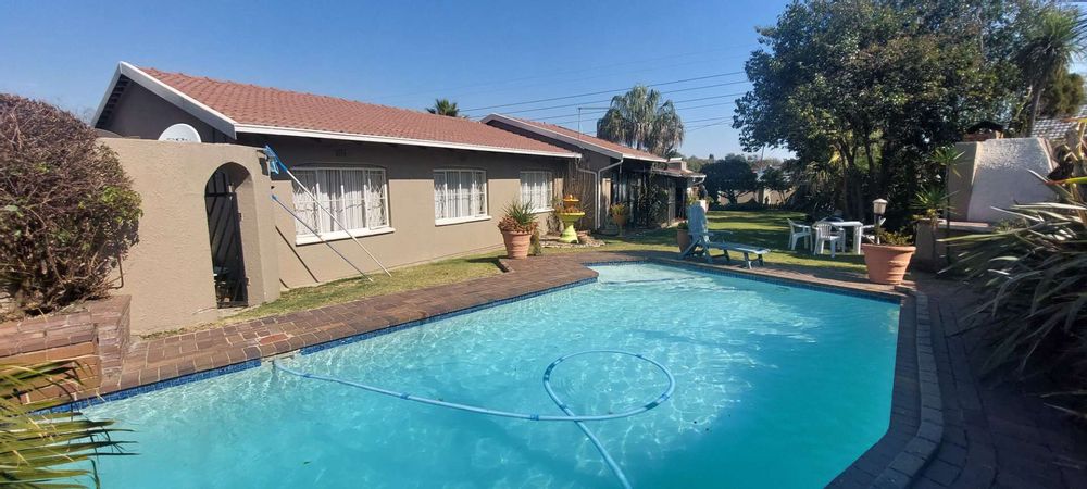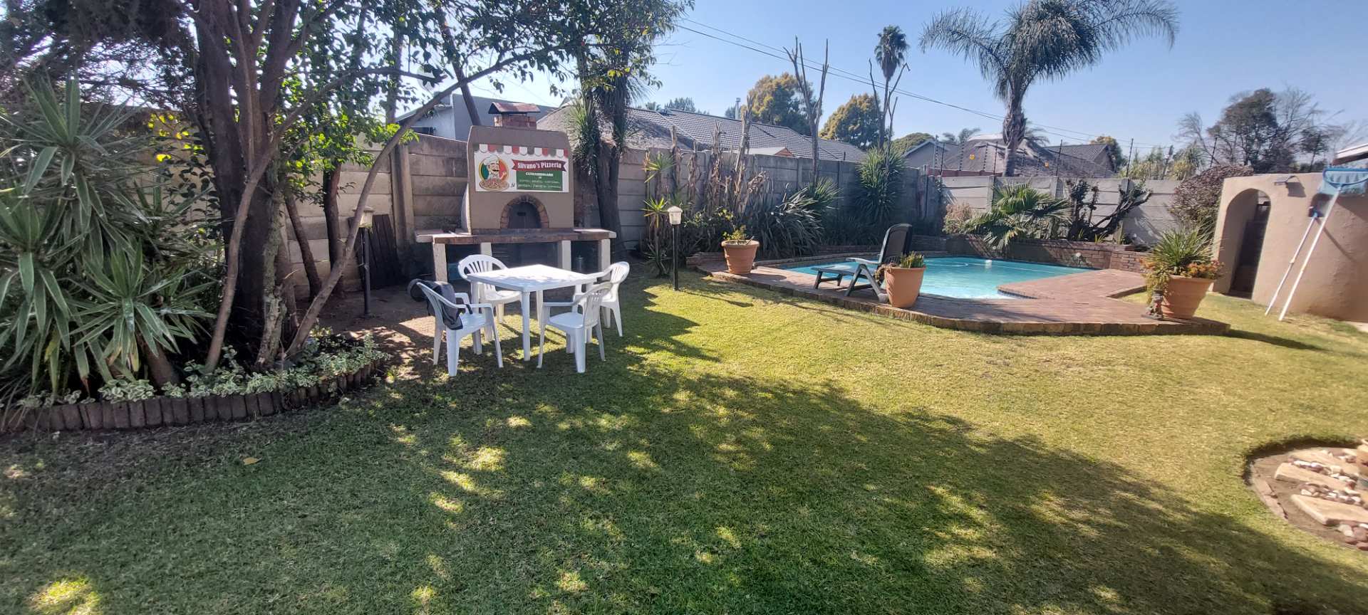 Step into the sunroom, an entertainment oasis equipped with a built-in braai, ideal for year-round enjoyment. The outdoor space is equally impressive, featuring a sparkling pool surrounded by a well-manicured garden, offering a serene backdrop for relaxation or outdoor activities.