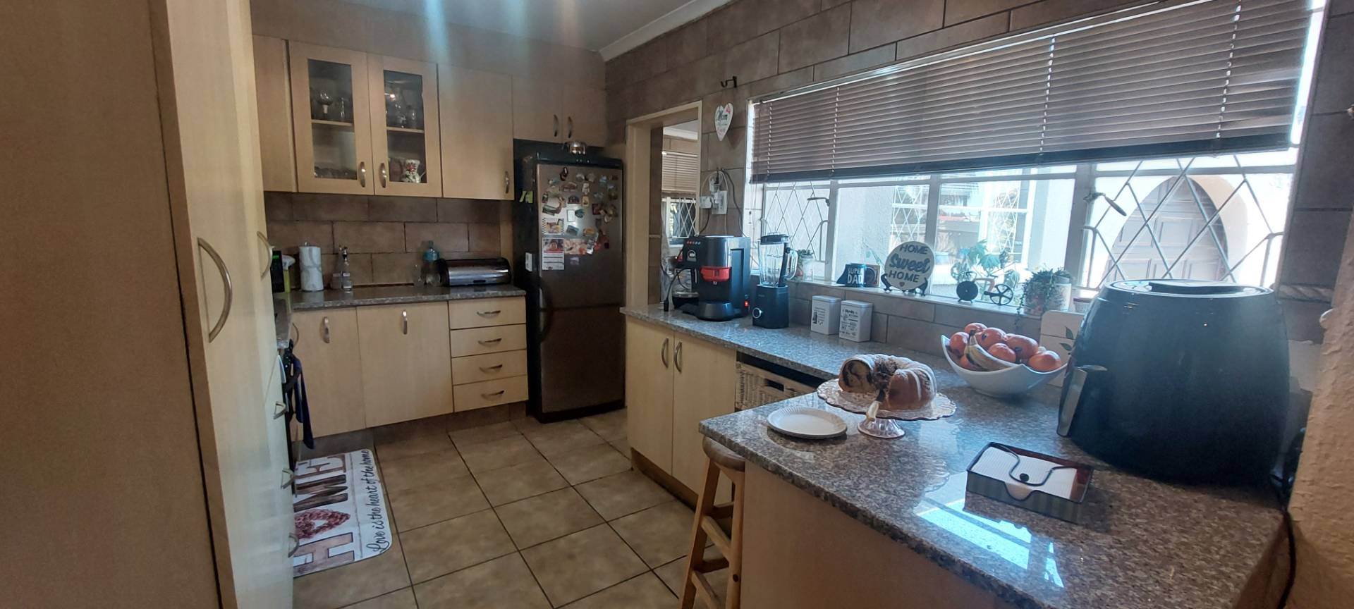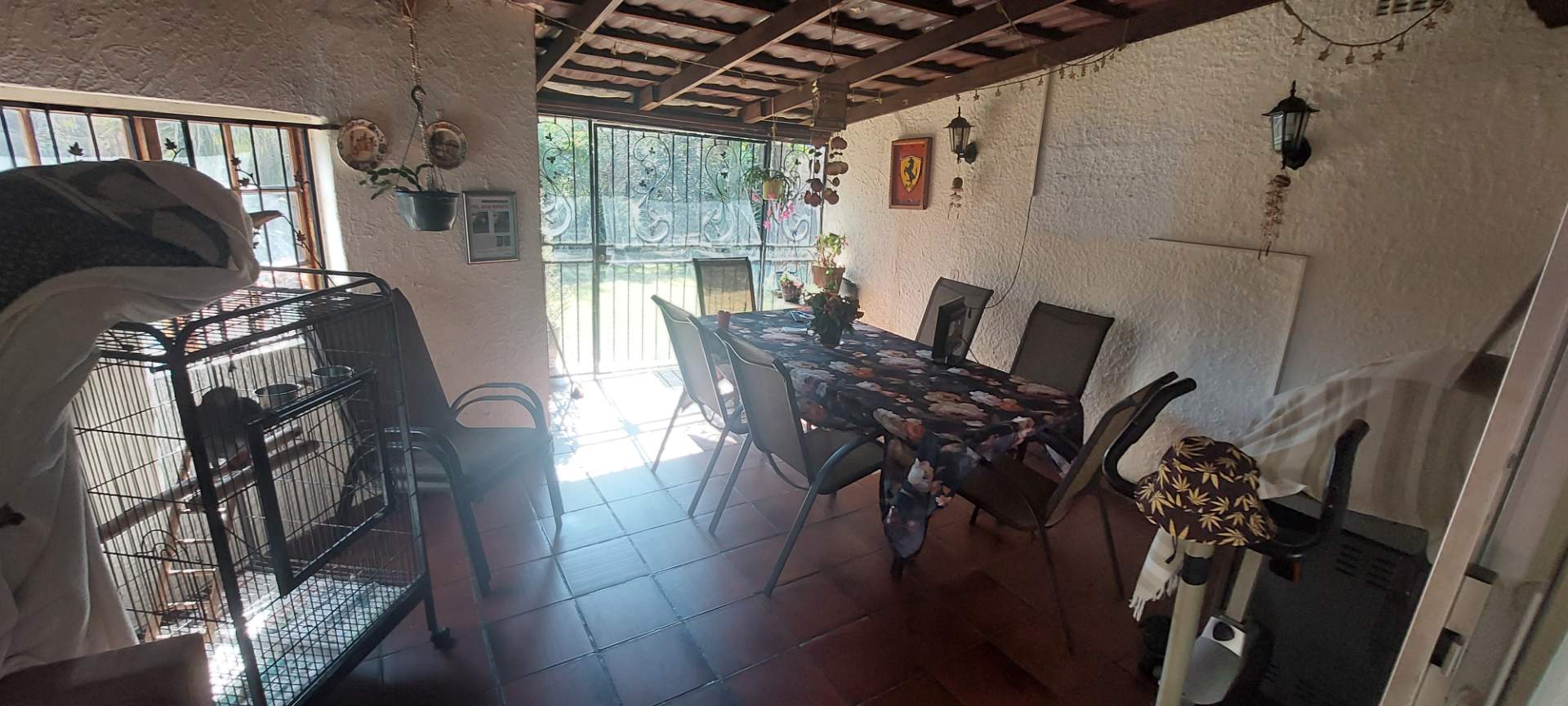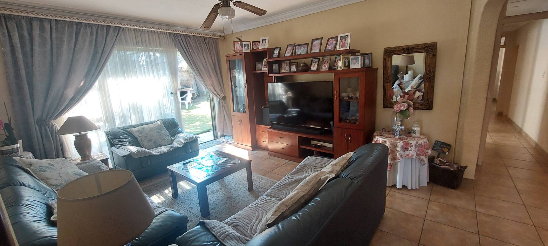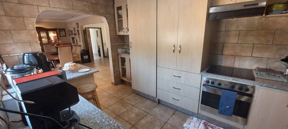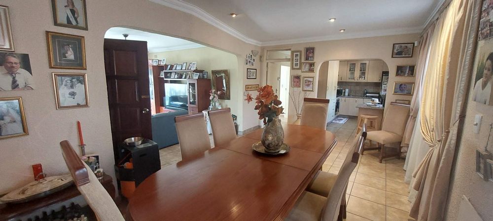 Step into the sunroom, an entertainment oasis equipped with a built-in braai, ideal for year-round enjoyment. The outdoor space is equally impressive, featuring a sparkling pool surrounded by a well-manicured garden, offering a serene backdrop for relaxation or outdoor activities.