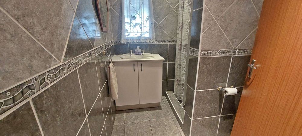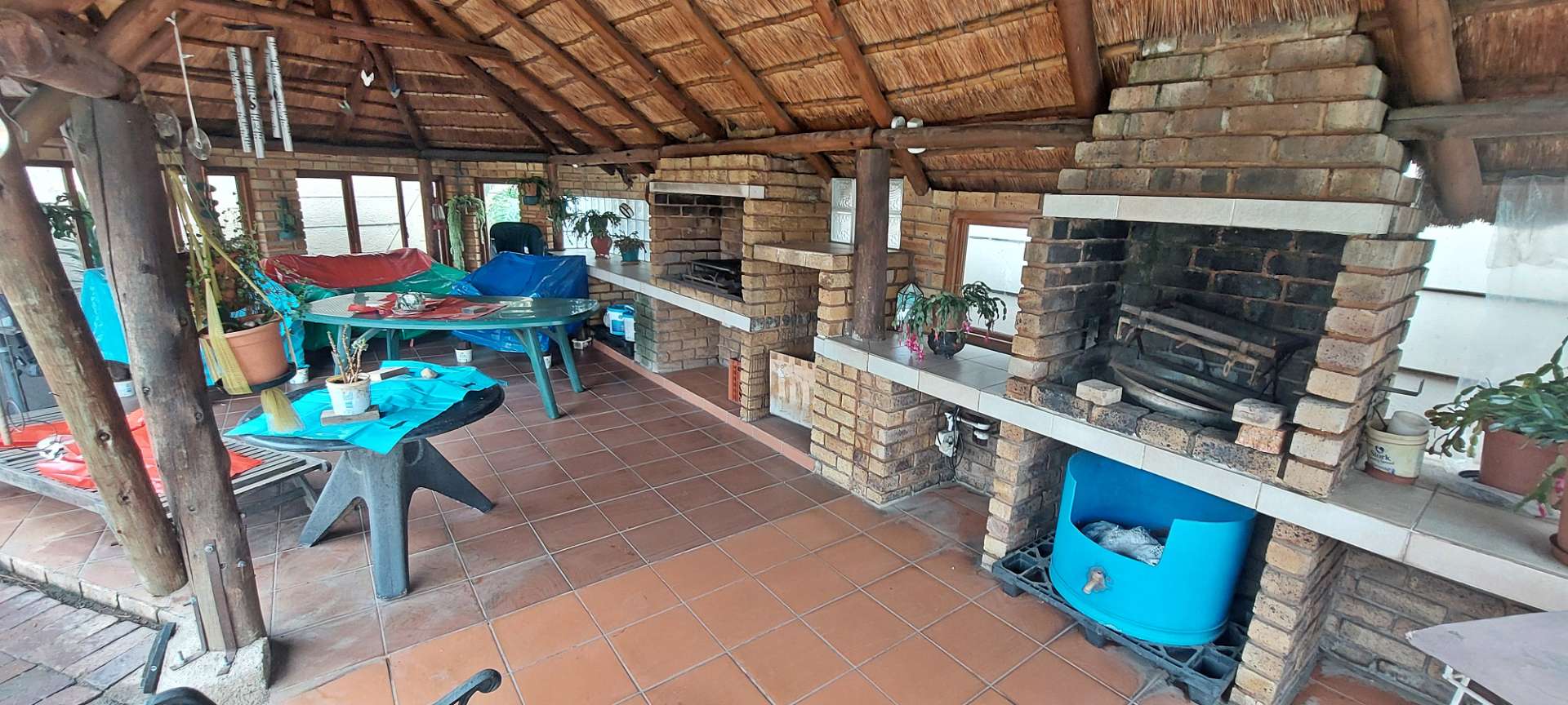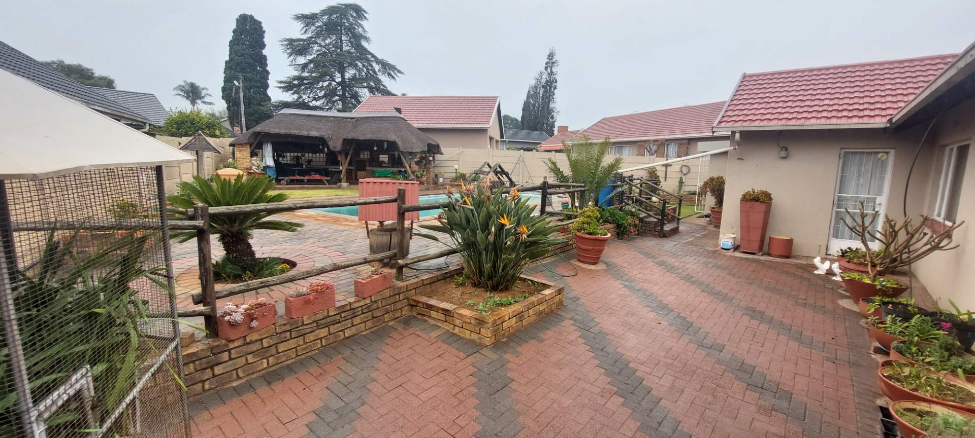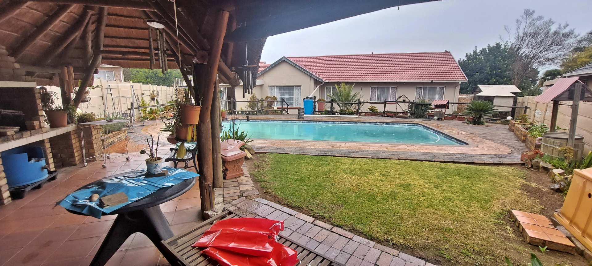 Step outside to discover the expansive thatched Lapa entertainment area, featuring a double built-in braai, perfect for hosting family and friends. Enjoy a refreshing swim in the pool, or simply relax in the serene outdoor setting.