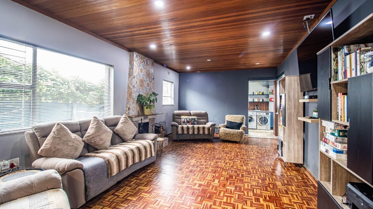 The heart of the home is its modern open-plan layout, seamlessly connecting the kitchen, dining room, and lounges. The kitchen boasts contemporary finishes and flows effortlessly into the dining area, ideal for both casual family meals and formal entertaining. Unwind in one of the cozy lounges, complete with a charming fireplace that adds warmth and ambiance on cooler evenings.